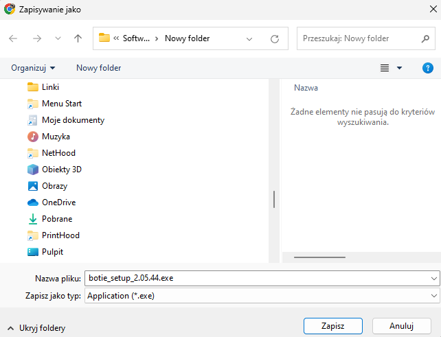 6. Wybierz dowolne miejsce na swoim komputerze, w którym zapiszesz instalatora robota.